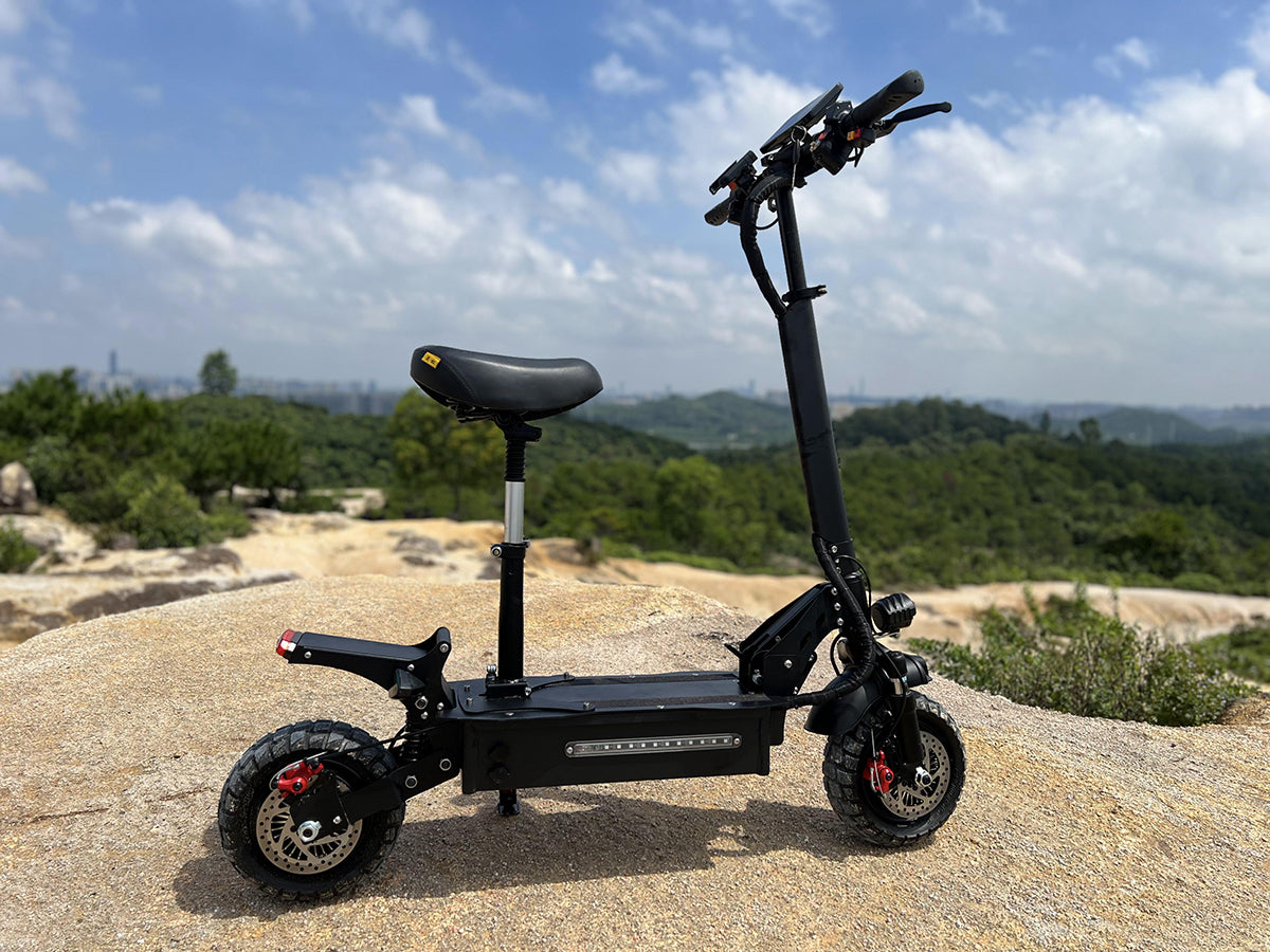 T2 liideway electric scooter ,10inch off road 3000w*2 double motor with 60v 20AH battery. And max speed 80-100km.Electric scooter T2 liideway is mainly used for transportation and entertainment, for men, women, and children of all ages. T2 electric scooter can be used at different times and in different weather conditions, with almost no need to learn and can be quickly learned. Electric scooter T2 can be used in residential areas, parks, work, play by the beach, or play outdoors, and is easy to carry. Electric scooter battery can be taken out and charged at any time, easy to fold electric scooter, and Electric scooter T2 power is very powerful. Liideway T2 electric scooter can be used for climbing, crossing mountain roads, cycling on rainy days, or adding seats to ride on, You can also ride while standing, and electric scooter itself has a high-strength shock absorption effect,
